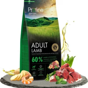 Uw Volwassen hond verdient uiteraard de beste voeding. De Profine Adult Lamb & Potatoes is een zeer goede voeding voor uw volwassen hond. De Profine Adult lam met aardappel is rijk aan Lam en groenten en draagt uitermate goed bij aan de gezondheid en weerstand van uw hond. Tevens levert deze voeding van Profine de juiste eiwitten en energie om uw volwassen hond actief te houden. De grote hoeveelheid Lam levert goede eiwitten die uw hond nodig heeft. Tevens zorgen de toegevoegde groenten voor een goede weerstand zodat de gezondheid van uw hond op pijl blijft.